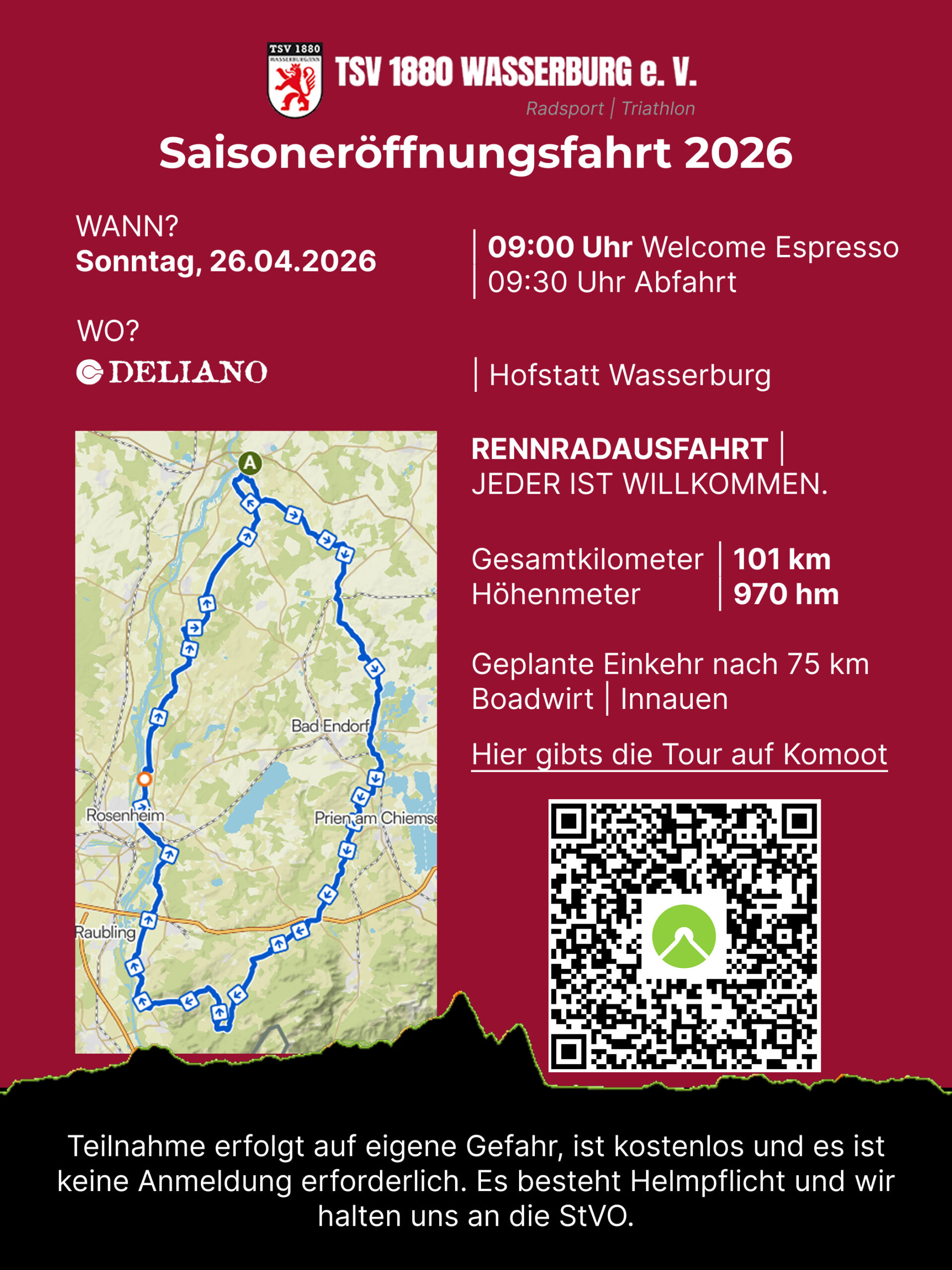 Saisonauftaktfahrt 2026 der Radsportabteilung des TSV Wasserburg am 26.04.2026