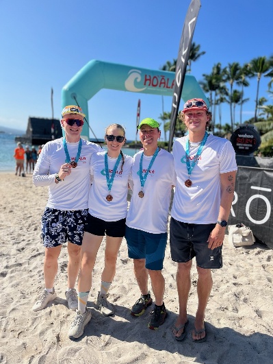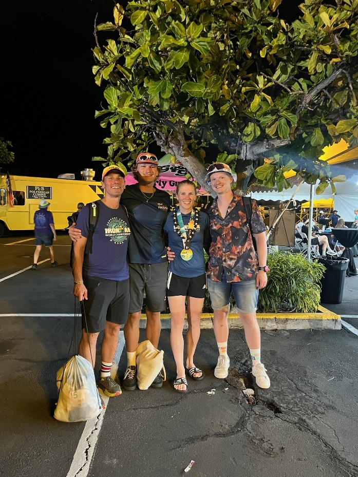 Im Ziel wurde ich, wie schon am Morgen, wieder von sehr netten Helferinnen und Helfern empfangen. Ich habe dann die traditionelle hawaiianische Holzkette (Kukui Nut Lei) und ein Handtuch umgehangen bekommen und wurde in den After-Race-Bereich weitergeleitet. Dort gab es dann auch die Finisher-Medaille, das Finisher T-Shirt und die Finisher-Cap sowie jede Menge Essen und Trinken. Zum Abschluss gab es dann noch eine Açai Bowl und der Austausch mit anderen Athletinnen und meiner Begleitung über diesen einzigartigen Tag.
